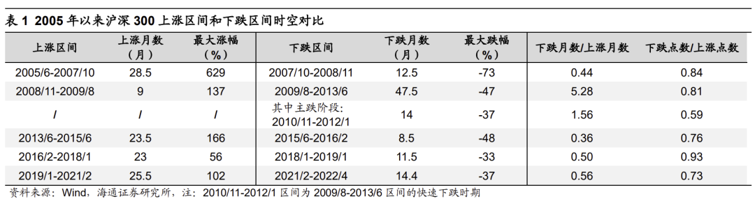 从股市牛熊周期来看,A股21年开始的大调整时空已经比较显著。2005年以来A股经历了5轮牛熊周期,以沪深300指数为例,熊市下跌大概12个月左右,跌幅约30%-45%(详见表1)。最近的一次熊市下跌开始于21年2月18日,如果计算到 4月27日低点,下跌持续近15个月,如果算到9月底(9月底沪深300点位接近4月底),近20个月(21/02-22/09),最大跌幅达37%,对比历史这次调整时空已经显著。如以09/29创下新低的上证50指数为例,21/02以来下跌持续19.6个月、最大跌幅为37%,与历史下跌幅度(跌幅30%-50%)和时间(下跌12个月)相比已经很明显。我们进一步从市场估值水平和市场情绪角度看,当前市场底部特征已经较为明确。