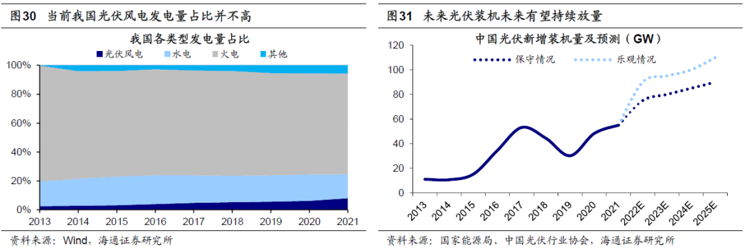 “双碳”目标下光伏风电和新能源车高景气度有望延续。近两年光伏和风电发展迅速,但当前我国各类型发电量中光伏和风电占比依然较低,未来随着政策的不断加码,光伏和风电装机有望持续放量。中国光伏行业协会预计2022-2025年我国年均新增光伏装机将达到83-99GW,乐观情况下2021-2025年全球及中国光伏新增装机量CAGR分别为18.0%和19.0%。随着清洁能源建设的提速,配套的新型储能也将迎来发展的重要机遇期。据中关村储能产业技术联盟预测,理想场景下,2025年我国新型储能累计装机量将达到55.89GW,2021-2025年CAGR将达到76.7%。新能源车方面,当前我国新能源车远未到天花板,22年1-9月我国新能源汽车累计渗透率仅为23.5%,未来提升空间还很大。新能源汽车销售放量将带动动力电池需求的增长,根据中创新航招股说明书援引弗若斯特沙利文、中国汽车动力电池产业创新联盟预测,2021-2025E我国动力电池装机量CAGR将达到40.2%。综上,光伏、风电和新能源车快速增长趋势未改,科创板相关企业将持续受益于这一趋势。