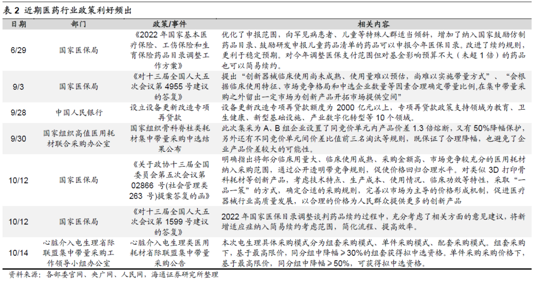 医药行业政策环境边际改善,中国医疗消费需求将持续释放。政策是影响医药行业的核心变量之一,而药品集采政策已经趋于温和。从近两批国家集采结果来看,药价平均降幅已从早前的59%收窄至第7批集采的48%,整体降幅趋于稳定,我们认为未来集采政策缓和对医药行业盈利空间的压制将会逐步减弱。同时,国家医保局等有关部门出台相关政策支持创新药、创新医疗器械高质量发展,如2022/6/29国家医保局公布《2022年国家基本医疗保险、工伤保险和生育保险药品目录调整工作方案》,提出简易续约规则,同时鼓励企业开发创新药的新适应症。2022/9/3国家医保局表示“创新器械临床使用尚未成熟、使用量难以预估,尚难以实施带量方式”,明确创新医疗器械暂不纳入集采范围。除了政策变量之外,我国人口老龄化正在加深,未来医疗需求将持续增加。根据瑞尔集团招股书援引弗若斯特沙利文预测,中国总医疗支出将从2021年的64874亿元增长至2025年的97371亿元,5年CAGR将达到10.7%。业绩方面,海通医药分析师预测医疗器械板块的23年盈利增速有望达到20-25%左右,生物制品增速更高,例如疫苗板块盈利增速预计超过30%。综上,随着政策环境改善及医疗消费需求增长,科创板医药生物行业长期发展前景十分广阔。
