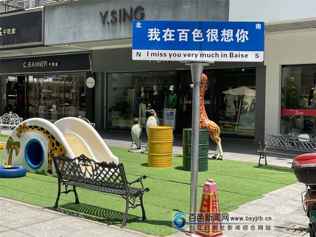 店内楼上放置的“我在百色很想你”路牌