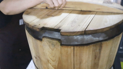 鑫荣家的豆花都是店家自己做的,提前一晚浸泡好黄豆,隔天来店里磨成豆浆,煮沸、点卤、定型,最后就放在锅中一直温煮,随吃随盛。