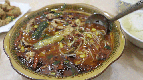 反倒是不起眼的配菜们颇为出色,久经汤汁的洗礼,黄瓜变得柔嫩,豆芽爽脆,辣得“斯哈斯哈”直喝水也舍不得放下筷子。虽然配菜种类少,但胜在味道是让人吃完就忘不了的程度。