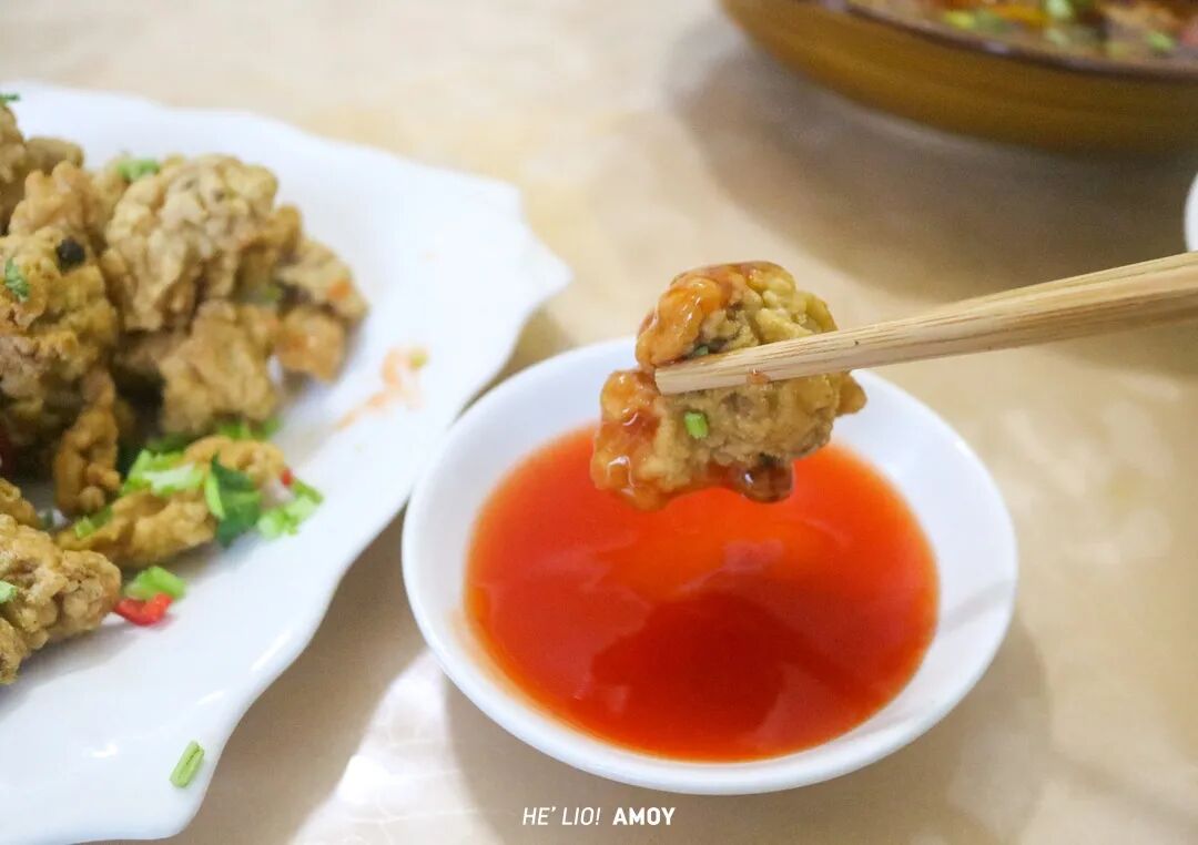 吃时一不小心可能会咬到一些“小惊喜”,应该是在腌制时加入了花椒,所以经过油炸,花椒粒就被困在了面衣里,一咬,舌尖泛开的麻可能会让不爱吃花椒的人眉头一皱。