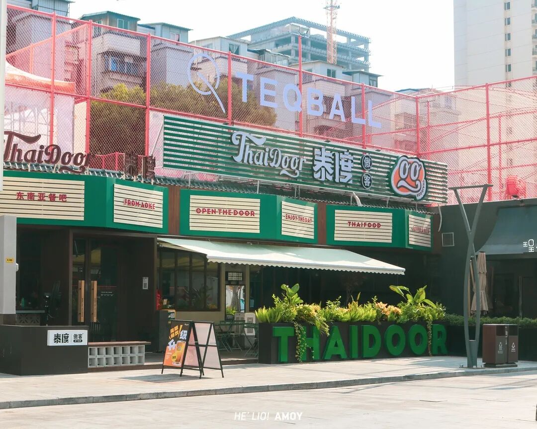 果壳街区内还有一家泰式风情拉满的东南亚餐厅。独栋的墨绿色小楼很是抓人眼球,天气好的话户外的位置很是舒服~