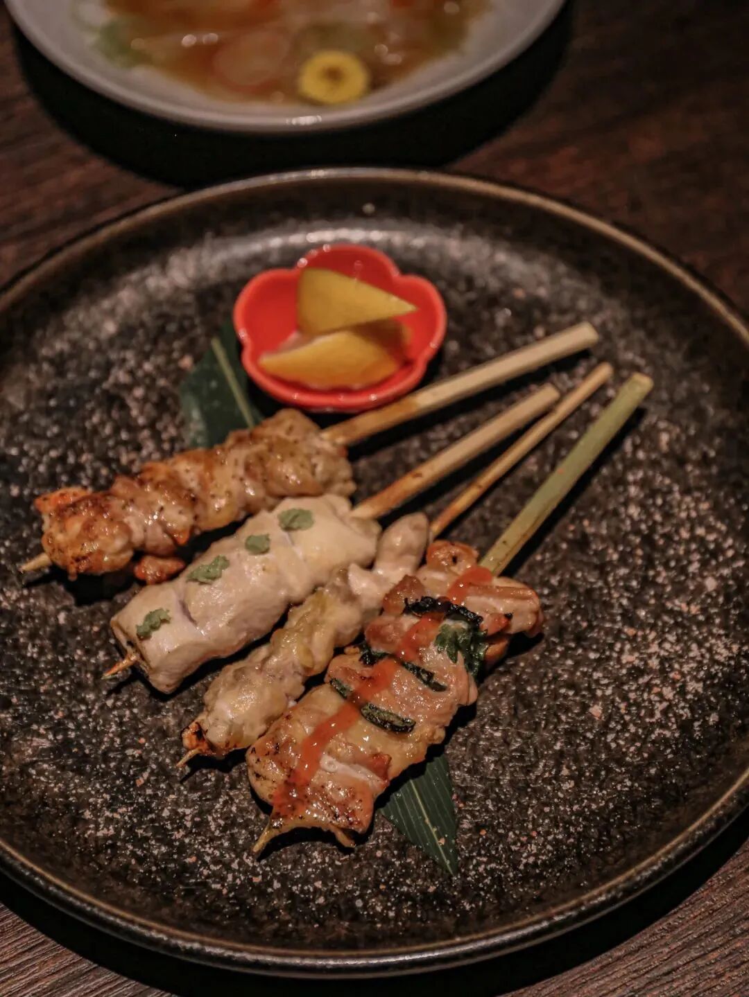 传说中的和牛三明治、各式别具特色的日式料理应有尽有。小酌必备的烧鸟系列也是店里的招牌,每天都是活鸡现杀,所以烧鸟的部位也是每日限量,提前预订才能保证吃到喜欢的部位。