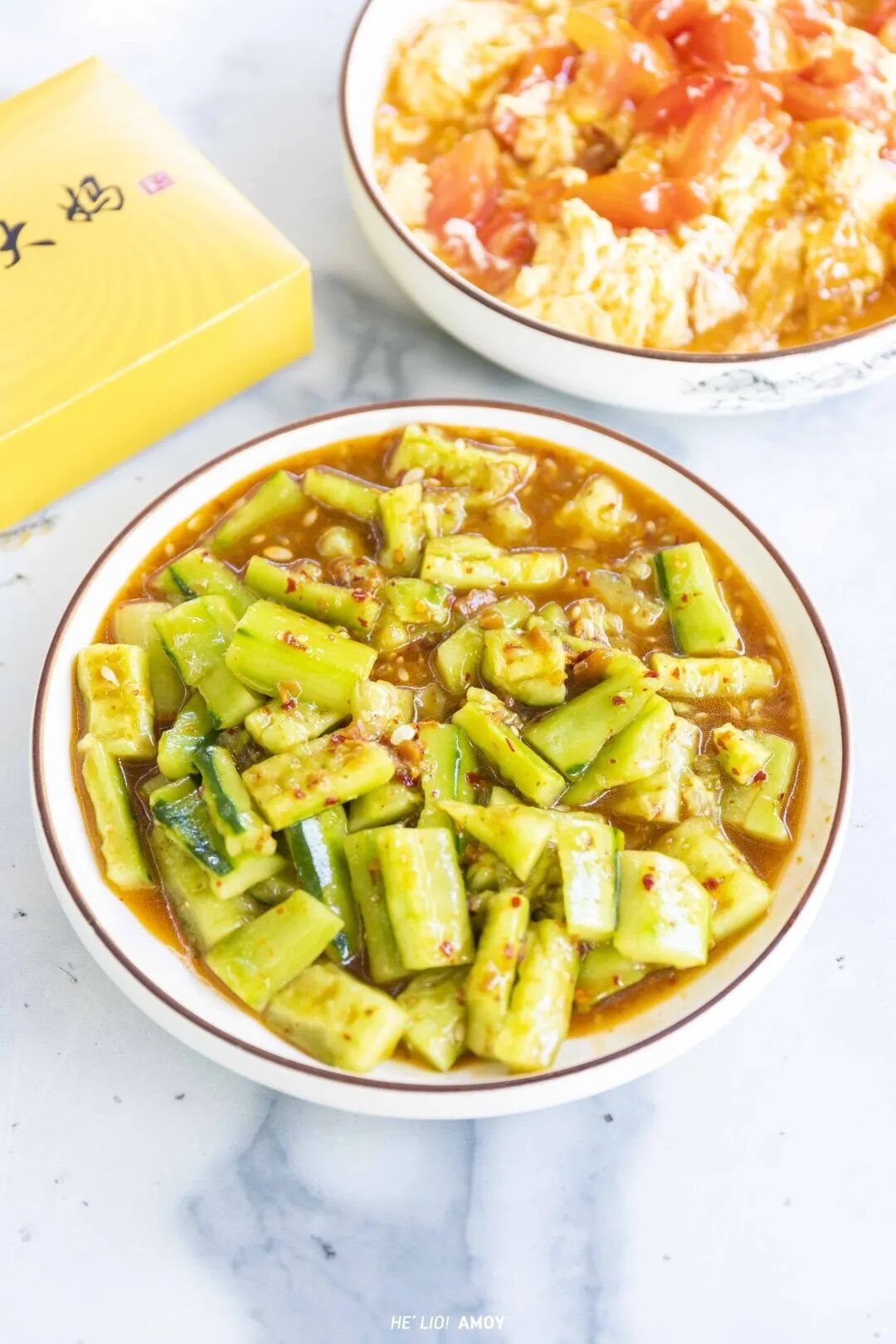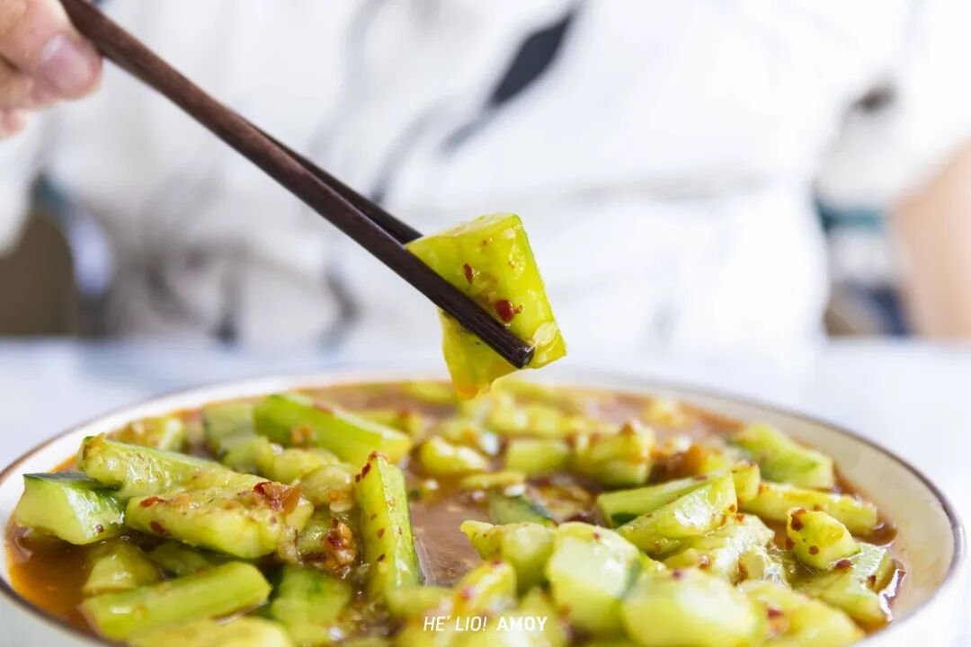 为了确保这一天的维生素摄入量,好料菌又加点了一份“凉拌黄瓜” ,光看着这浓郁的酱汁,就已能感觉到它的辣劲,虽然看着满是鲜红的汤汁,但入口并不算辣,甚至还有些许鲜甜!