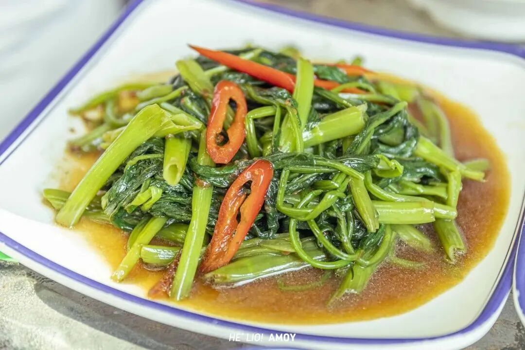 淡淡的鲜味,搭配翠绿的空心菜,入口就让虾酱鲜甜的占满了整个口腔,轻轻咀嚼,让虾酱与空心菜一同“作战”,在口中交织出曼妙的乐章。