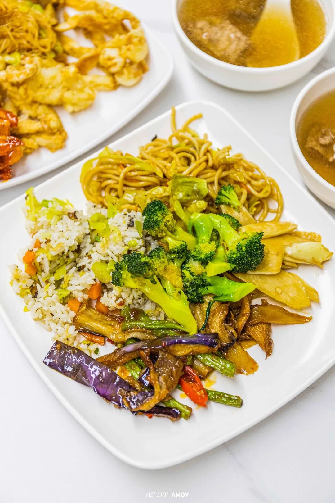 好料菌用餐时,不时看见店员拿着餐盒,做着打包的动作,询问后才知道,原来门店中还有外卖业务,主食和几样菜色组合,是岛内为数不多的“素食自助”外卖。