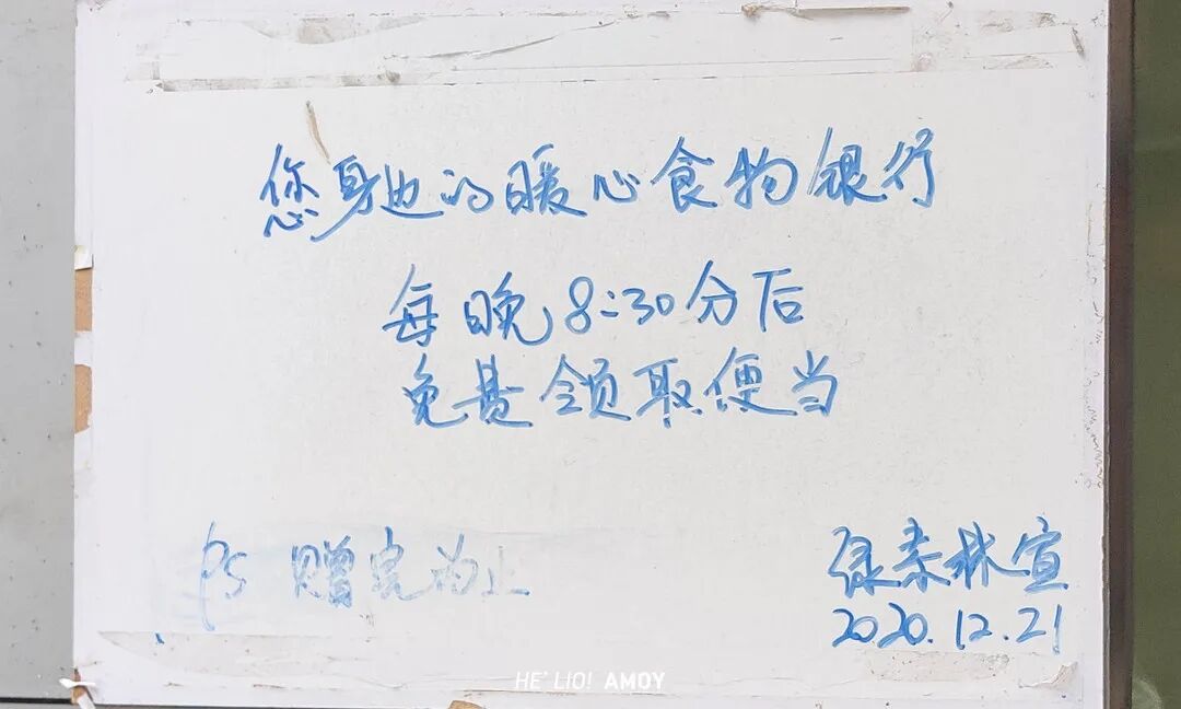 临走前,回头看了一眼门口,除了一张无奈的涨价通知外,这张“暖心食物银行”十分亮眼。这让好料菌又折返问起这张通告的由来……店员说道,“店内不时会接待一些孤寡老人或是残疾人,有时还会和一些爱心机构做一些活动,做素食的大家都是秉着一份善心嘛!“