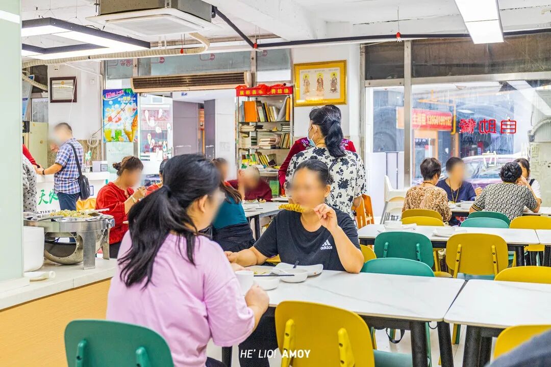 没有华丽的装潢,简单的长条方桌及塑料凳,就是店内的全部座位构成。朴素而舒适,即便这样,一间屋子内,在饭点熙熙攘攘的人流之中,还是稍显拥挤……