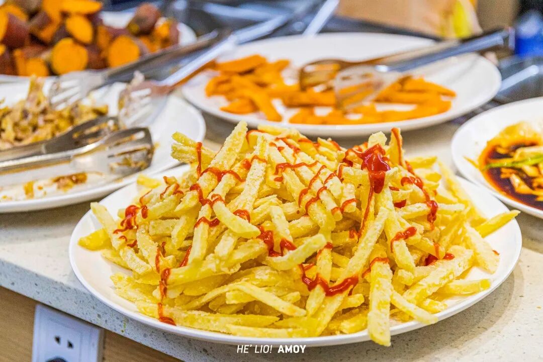 在“素食自助”界,老人和小孩都超爱的就是这一款又一款“炸物”啦!不论是咸香酥脆的炸菇片;还是清甜脆爽的炸地瓜;或是清脆经典的炸薯条……每一味跟前都是人潮涌动。
