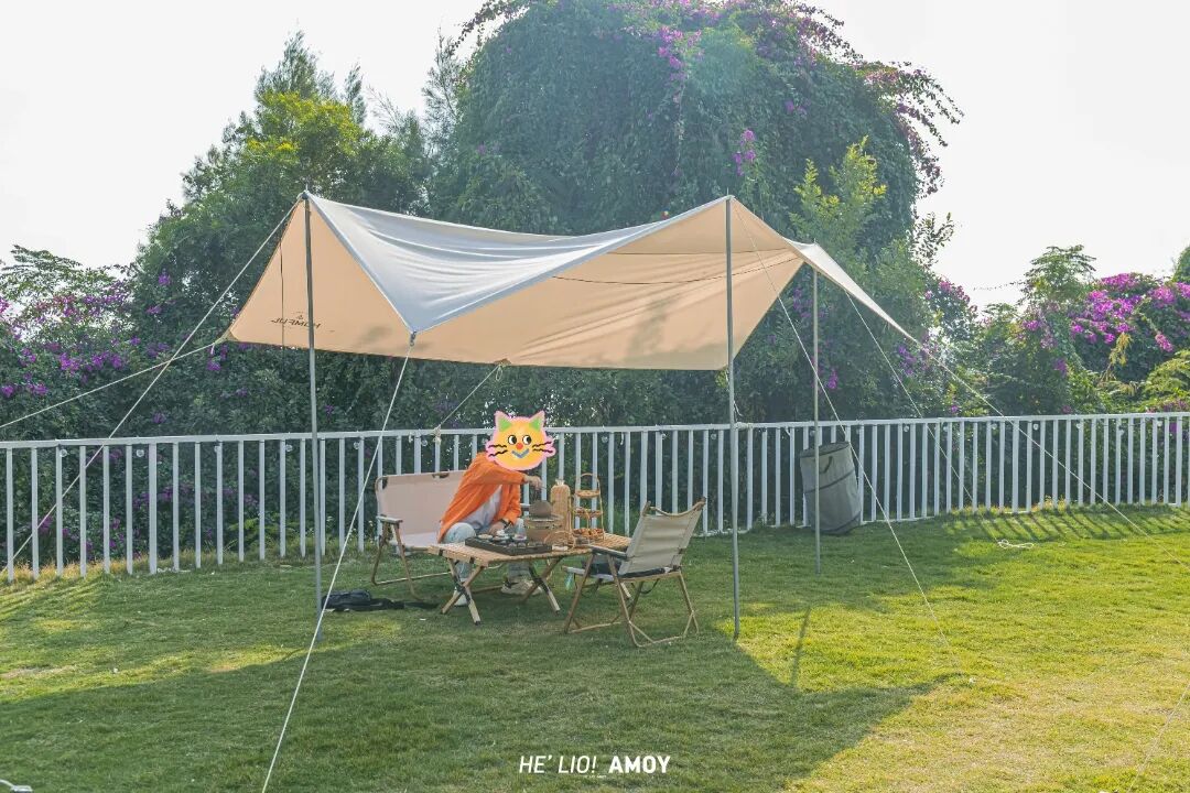 这样的景致再搭上个天幕,几个露营椅一摆,往那一坐,平日里疲惫的打工人随随便便就可以摆烂一下午。