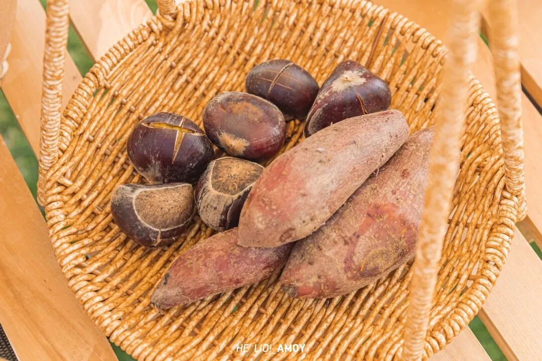 烤得累了,小番茄、砂糖橘、冬枣可以即取即吃,甚至可以直接抓一把花生就地掰起来。