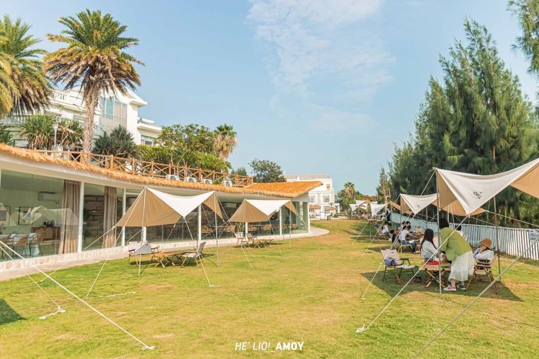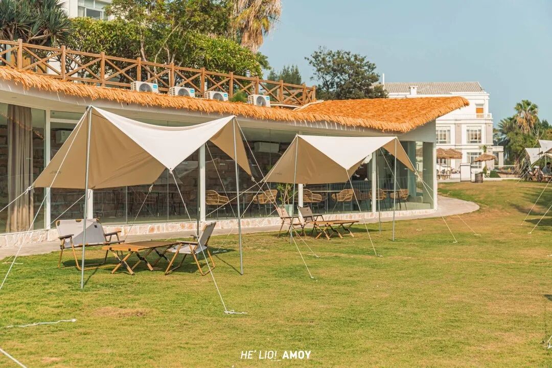 商家是懂生意的,趁着厦门近日阳光正好,气候宜人,不冷也不热,摆上烤炉,往日的露营基地摇身一变成了炙手可热的“海边茶室”。