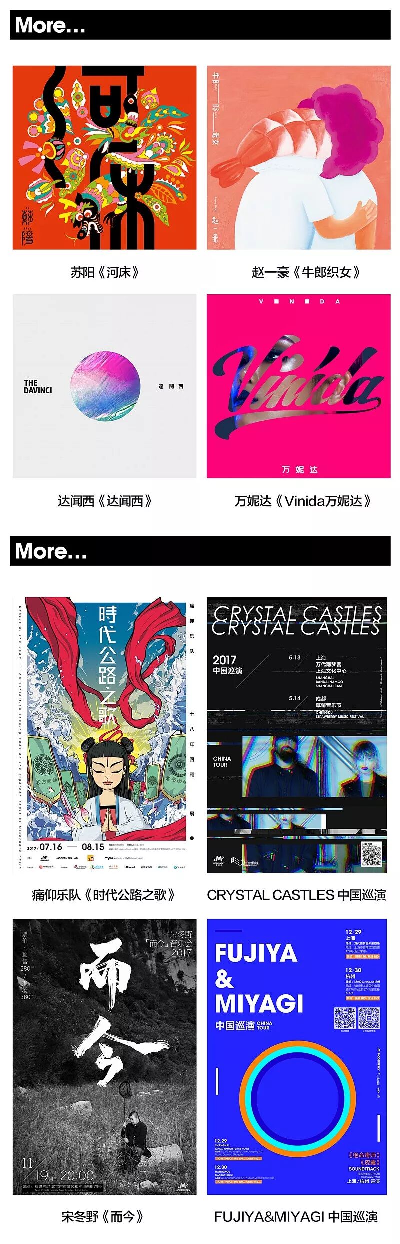 后来去过互联网公司(但当时的互联网公司环境里实在呆不下去很快离职),接着回到本行又做了两年杂志,为刊物《音乐时空》、《海外文摘》做整体的设计策划改版等,再后来自己开过工作室和运营自己的公司,给一些艺术和媒体机构做视觉顾问,也操刀了几个音乐节,比如09年张北草原音乐节的VI系统和主视觉,首届长阳音乐节等。这中间跟摩登天空也有过几次合作。