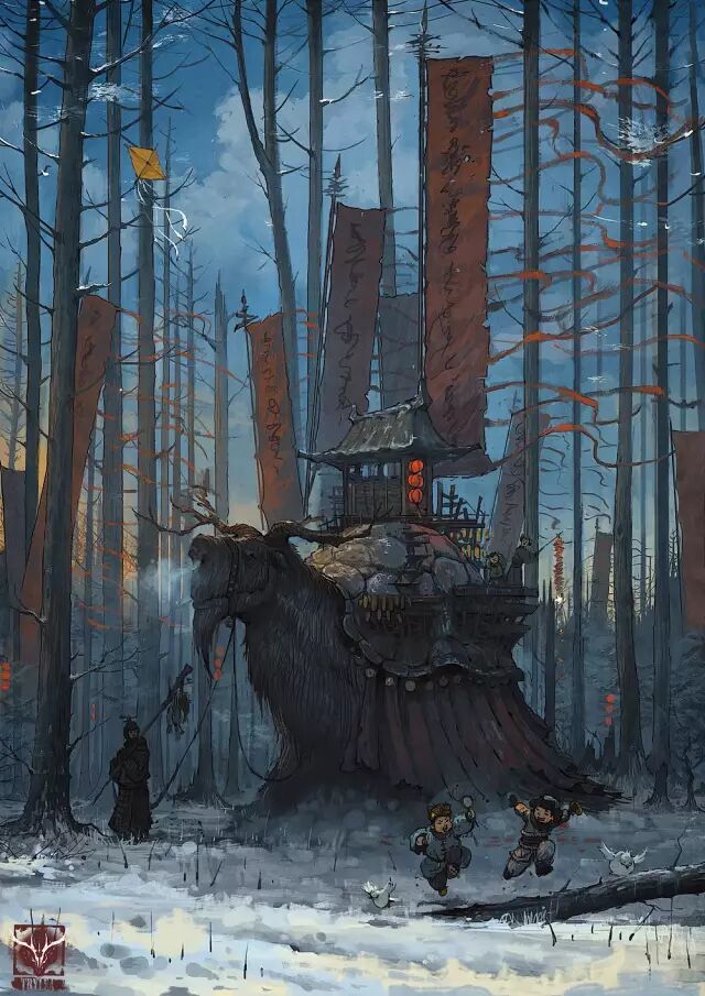 上图为大学寒假的练习,下图是大学时期为《九州志》创作的插画。