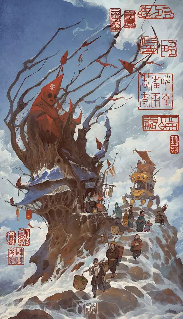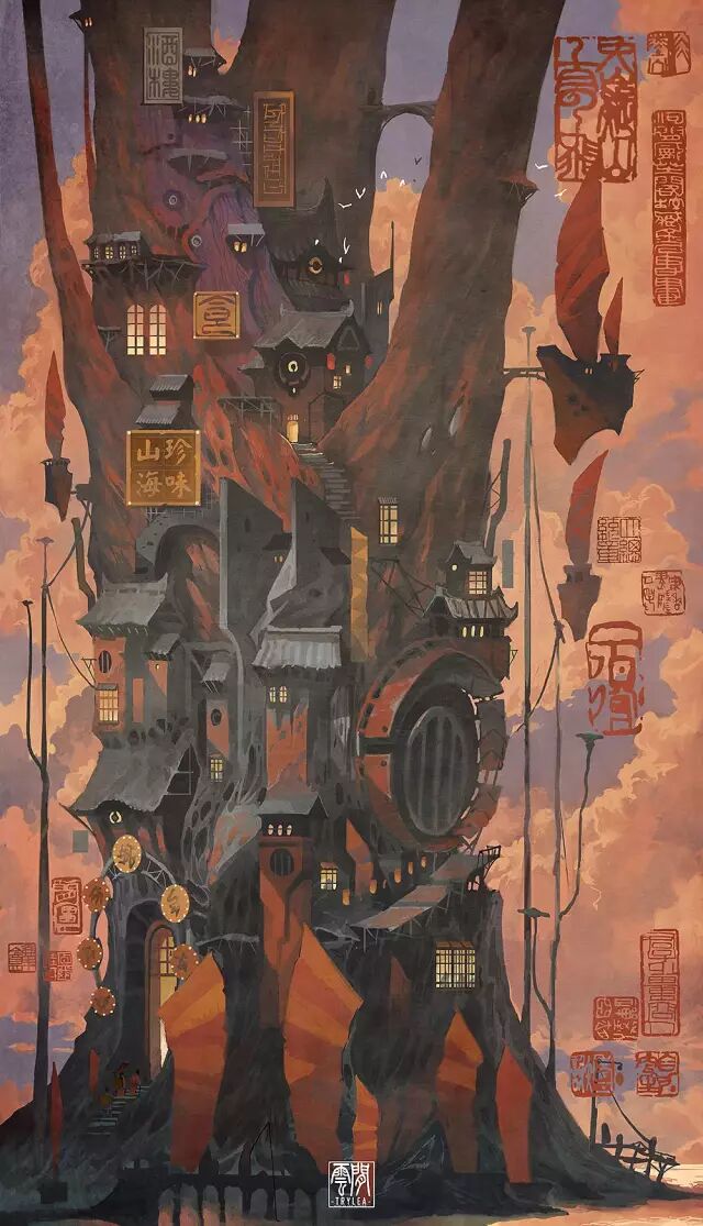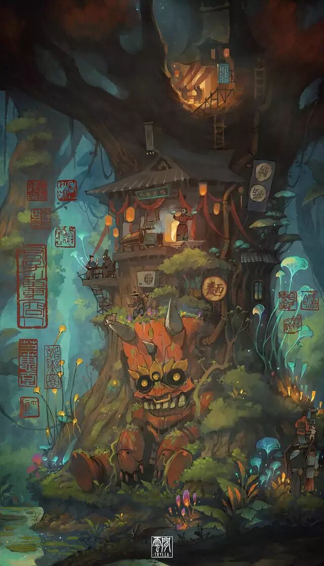 而且,老师可以说是非常年轻了,微博显示出生于89年。今天他更新了《出云志-烟火·云间》,烟火·云间主要讲的是树屋和食物的世界。关于树屋,很多人都有过这样的想象吧,这次 TRYLEA 将树屋的世界用插画表现出来,要想象有想象,要中国风有中国风,要故事有故事……可以说是非常酷了!