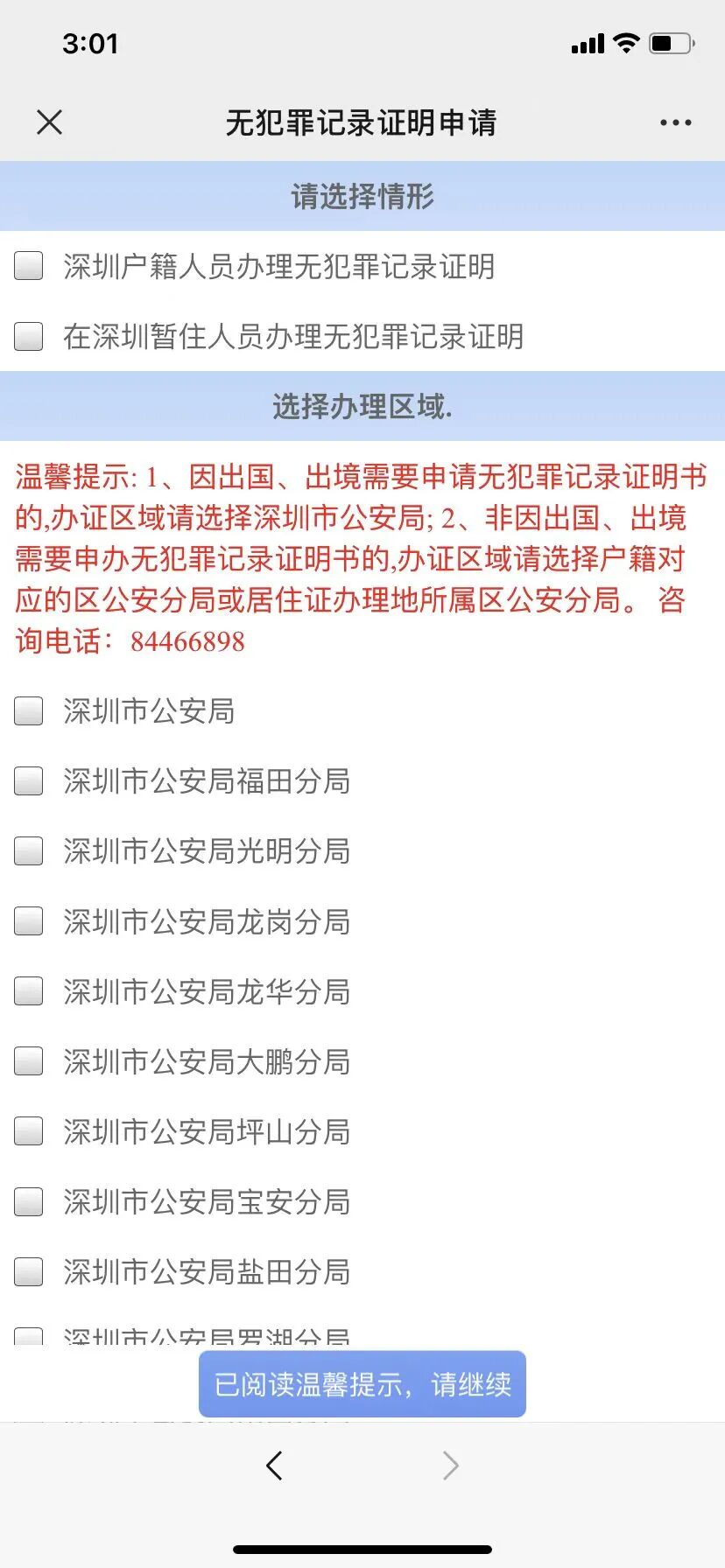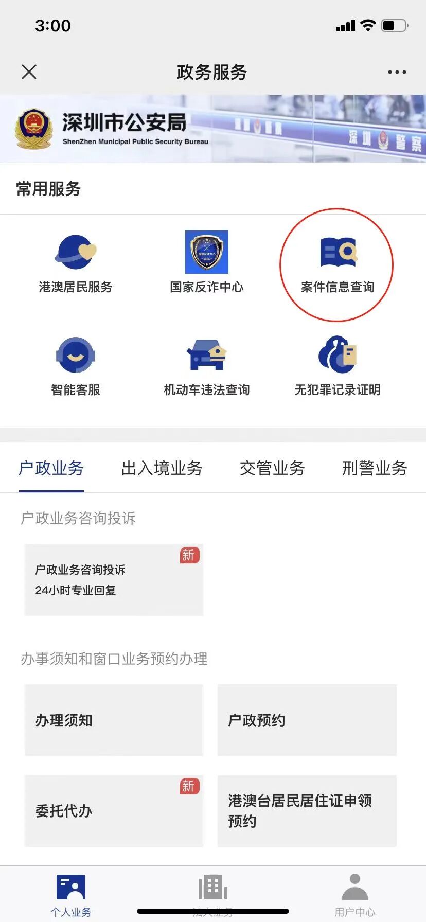 在“深圳公安”服务号