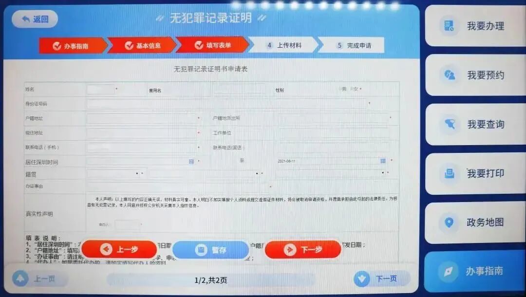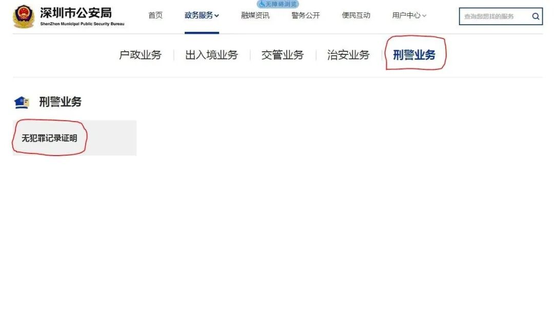 关注“深圳公安”微信公众号,选择“政务服务”→“刑警业务”→“无犯罪记录证明”→阅读并同意“知情同意书”→通过实名认证→完成申请表单填写、上传资料→审核无误后即可提交