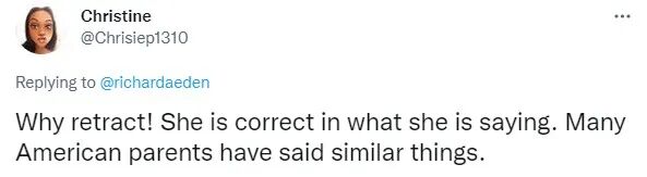 为什么要撤回!她说的是对的。许多美国父母都说过类似的话。