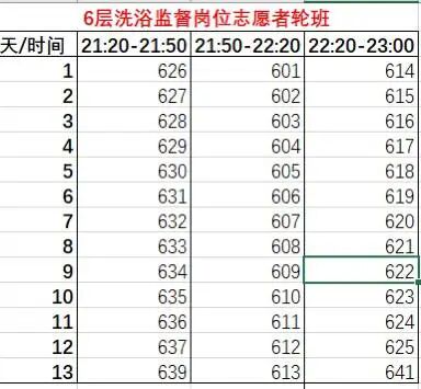 疫情管控期间,华东师范大学闵行校区本科生住宿区被分为四个区块,事发楼栋六号楼属于区块一,位于闵行校区西北角。4月16日前,由于区块一未检出阳性病例,学生可在安排时段内出宿舍楼栋,在区块内自由活动。宿舍楼浴室位于一层,全楼学生均需到一楼洗浴。疫情期间,公共浴室进行分批次分时段洗浴,每个时段时长二十分钟,一个时段内安排六个寝室二十四人同时洗浴。浴室门口设置有登记表,人员进出均需登记时间姓名,同时有志愿者在浴室门口进行监督。