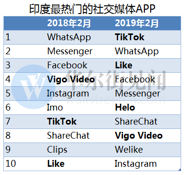 2018年12月,抖音海外版TikTok位列印度谷歌PlayStore第一名,一举超越WhatsApp,后者在2017年位列第一。自从2018年6月TikTok上线以来,一直位列印度安卓应用前五名。在其超过5亿的全球活跃用户中,印度用户比例占比达到39%。换言之,印度已经成为抖音在中国之外的最大市场。