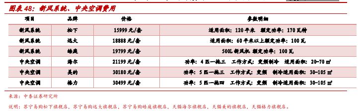 新风系统、中央空调费用:根据自身需求选择规格,总费用:37198 元。