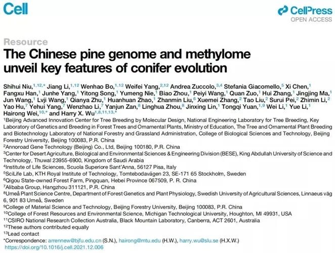 2021年12月,我校教师钮世辉团队研究成果发表于《细胞》。研究报道了我国特有乡土针叶树种油松的遗传密码及关键演化特征的分子调控机制,为理解针叶树演化与分子设计育种提供了重要遗传信息资源。