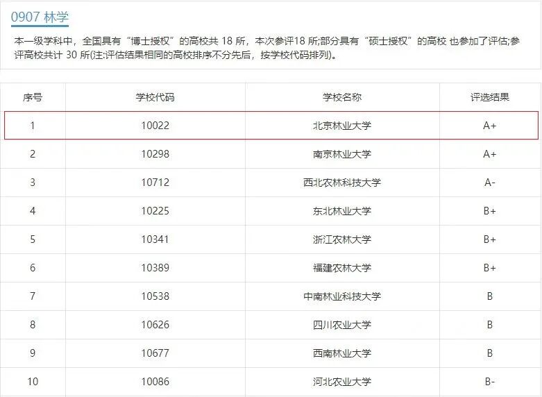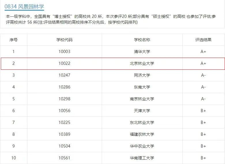 2017年12月,教育部学位与研究生教育发展中心公布了全国第四轮学科评估结果,我校林学和风景园林学两个一流建设学科位居第一A+档位。