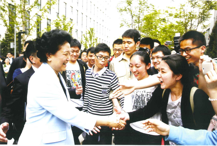 时任中共中央政治局委员、国务院副总理刘延东在学研中心与学生亲切握手