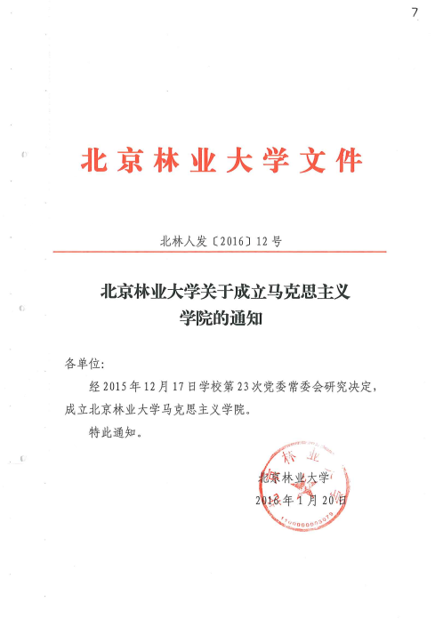 经2015年12月17日学校第23次党委常委会研究决定,成立北京林业大学马克思主义学院。