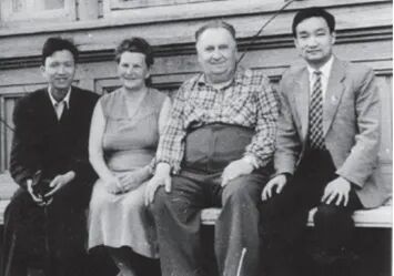 朱之悌(左一)和王明庥与导师雅勃那阔夫院士夫妇合影