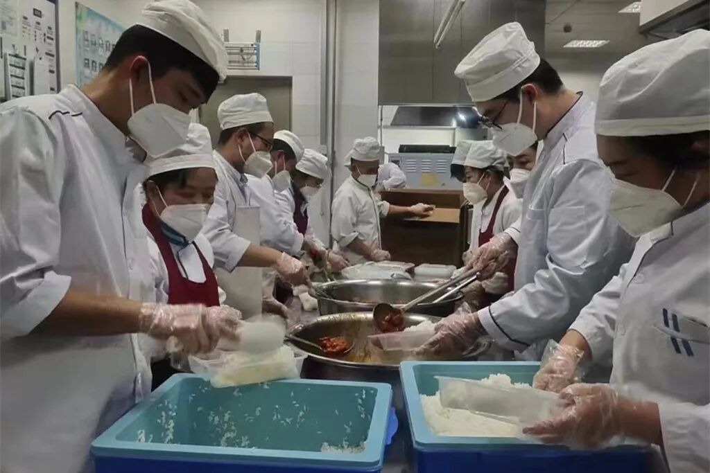 爱心餐暖胃又暖心。几天来,一份份温热的盒饭,源源不断送到学生手中。由于送餐数量大,每餐光分餐打包就需要2个多小时。学校整合食堂力量,食堂师傅们每天凌晨3点开始准备,毫不停歇忙到晚上12点,保证全校师生三餐的准时供应,工作量是平日里的好几倍。