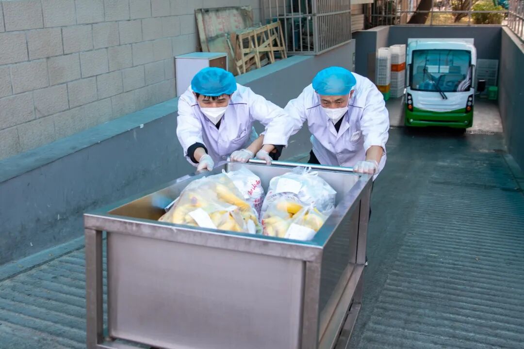 此时,距离学生用早餐仅有1个小时时间。这样短的时间,需要准备1.2万余份打包早餐。保障组第一时间开展紧急采购。上午8:00,紧急采购物资进校,8:30,餐饮工作人员将物资按各楼宇人数送到各宿舍楼下,由各楼层长发放到学生宿舍。