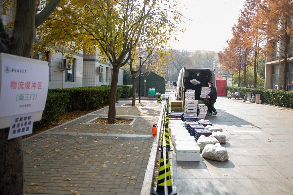 为了保障所有入校物资的消杀、静置到位,保障组连夜架设缓冲区隔离带、为快递区雾化消毒机增加大功率风扇、雾化板,组建缓冲区管理专班,安排专人排班值守监督物资消杀工作,联系采购补充防疫物资12万余件,生活物资约7万件,确保封校期间物资供应充足。