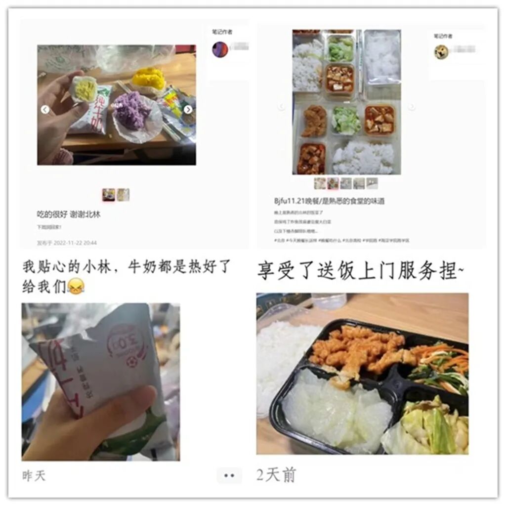 “我贴心的小林,牛奶都是热好了给我们!”“送餐太及时了,三餐荤素搭配,如有加餐需求就在楼层群里提出,都会迅速安排,尽力满足大家。谢谢学校!”学生们在朋友圈晒出餐饭配图点赞。