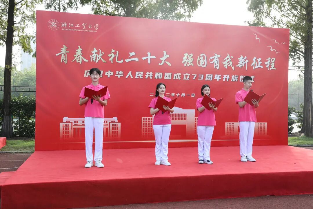 10月1日,在全国上下喜迎党的二十大胜利召开之际,浙江工业大学在朝晖校区田径场隆重举行主题为“青春献礼二十大,强国有我新征程”的升旗仪式。校党委副书记陈杰,校党委宣传部、学工部、研工部、校团委、体军部等相关部门(单位)负责人和各二级学院学生工作负责人、辅导员代表以及160余名新生代表参加仪式。