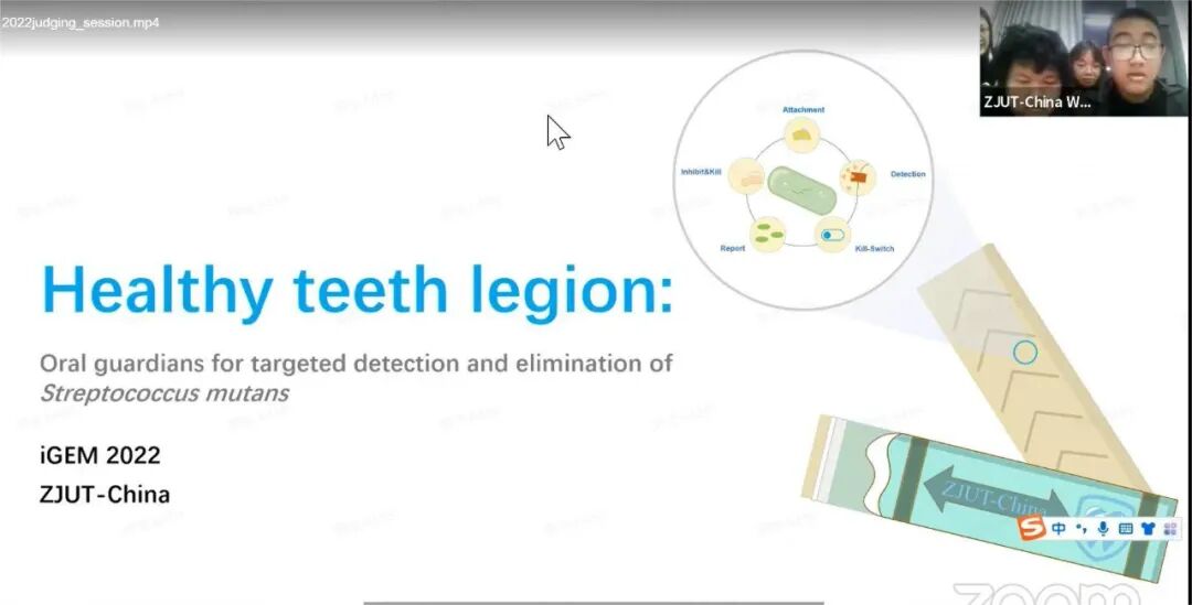 团队参赛的项目为《Healthy teeth legion:Oral guardians for targeted detection and elimination of Streptococcus mutans》,致力于预防部分口腔疾病。口腔健康状况作为一种常见的健康问题,对人们的生活造成了诸多困扰。实际上,大多数口腔疾病可以被预防,并进行早期阶段治疗。本课题以枯草芽孢杆菌为底盘菌,研发可靠便捷的口腔益生工程菌,通过利用龋齿致病菌-变异链球菌群体感应ComDE系统构建工程菌株感应口腔健康状况,并利用该系统诱导表达葡聚糖酶Mub及特异性抗菌肽实现牙菌斑内细菌生物膜EPS降解及变异链球菌灭杀,同时构建monellin甜味剂报告系统来展现最终口腔健康状态,达到检测口腔卫生情况与预防龋齿的目标,实现检测结果的便捷反馈。