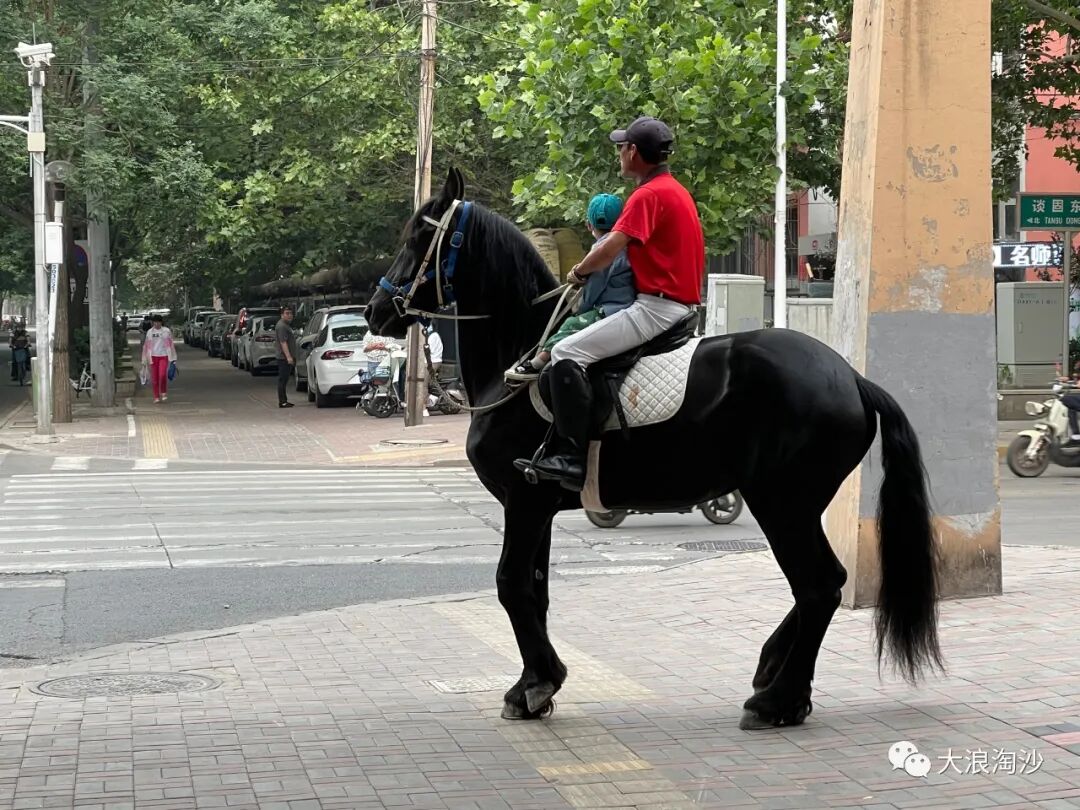 这是人来人往的居民区,就这样光明正大地走在人行道上,简直为所欲为。这马还不带粪兜,到时候在大街上随地大小便,还不是环卫工人来打扫。这就很真实了:富佬可以带着孩子宝马雕车香满路,春风十里火树银花,而我们只能跟在后面踩屎。