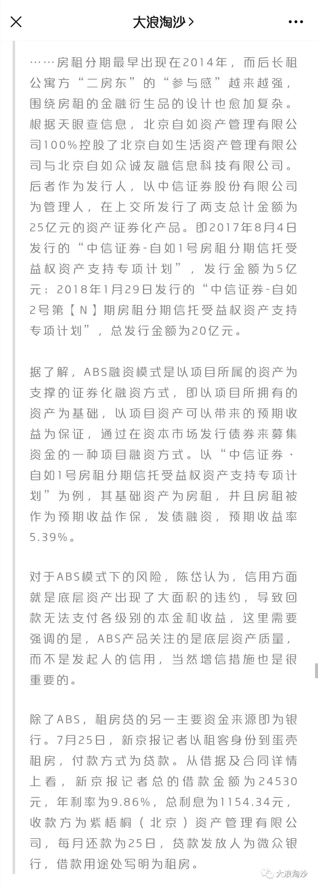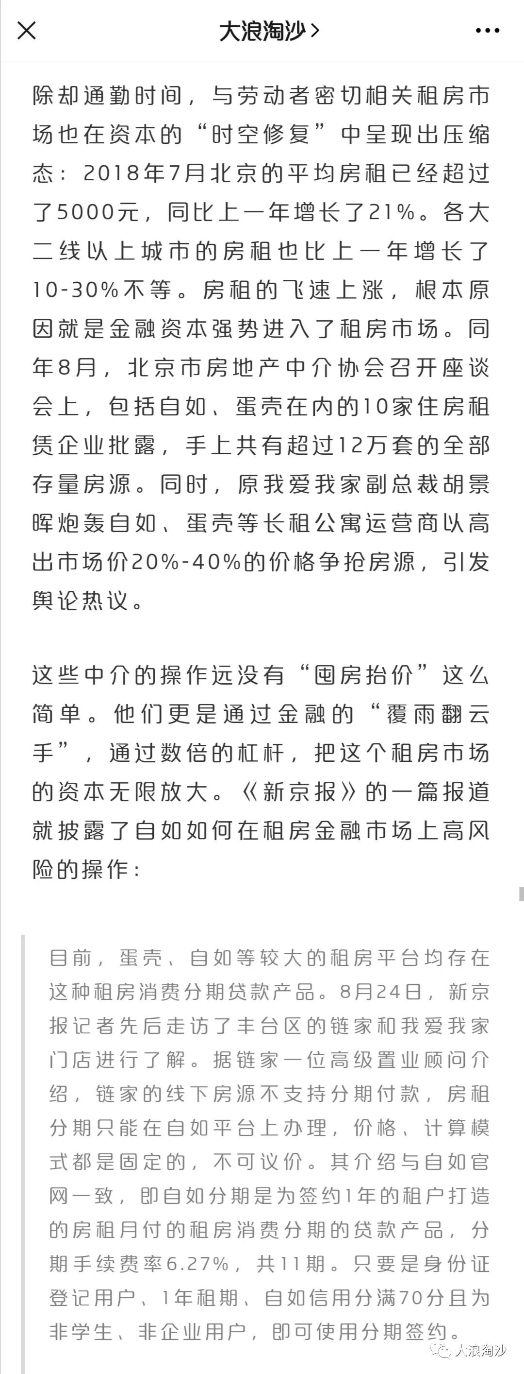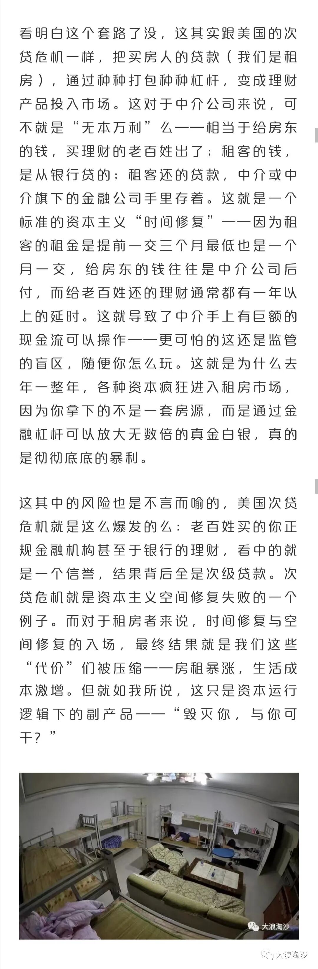 在2019年2月份,我写了这篇文章《疯涨的房租、超长通勤时间——大都市中的“边缘白领”与“资本游民”》,注意这是接近两年前的事情了。其中我详细分析了长租公寓是怎样玩金融游戏的,直接看当时文章的截图吧: