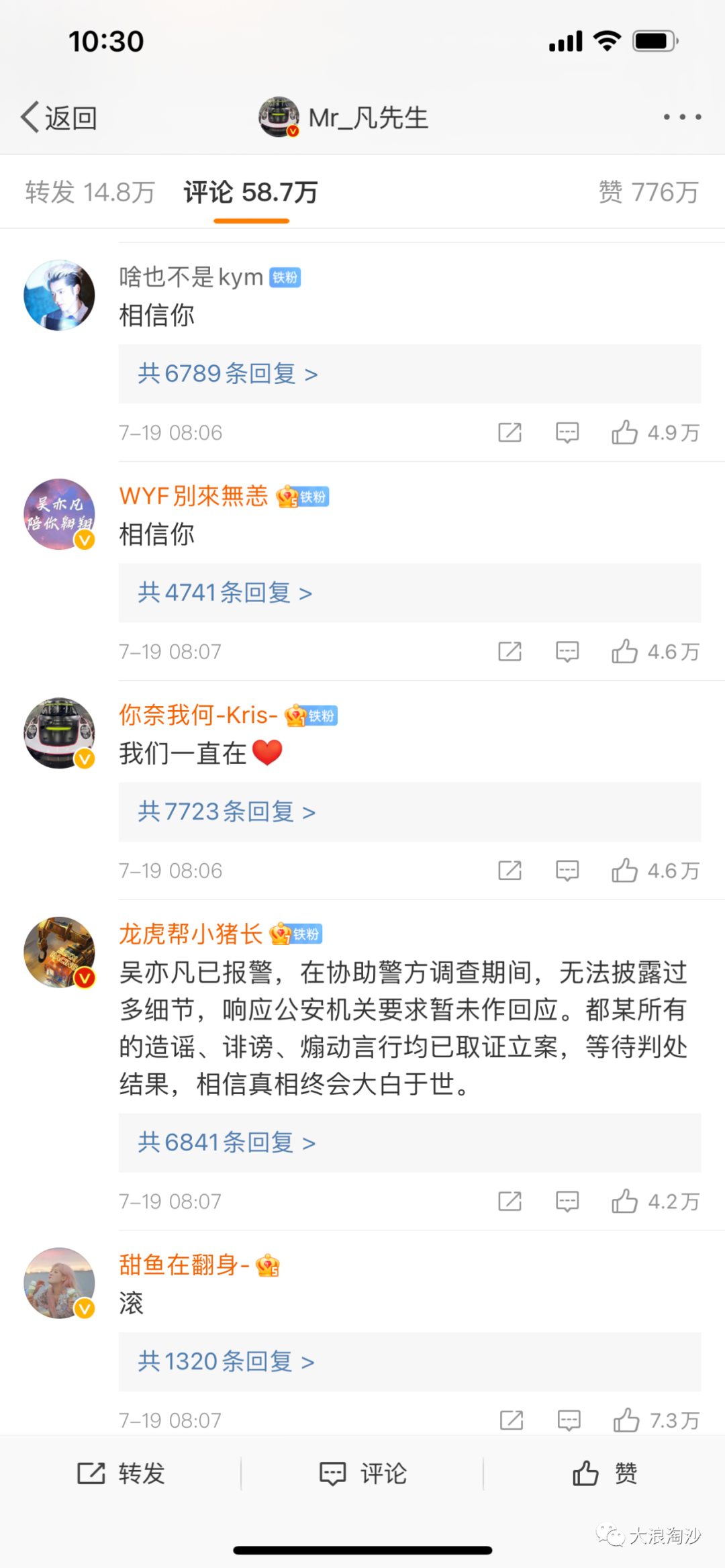 吴亦凡微博下面也是一片“相信你”“一直都在”的声音,不过有一位友军瞒天过海,成功的躲过了删评大法: