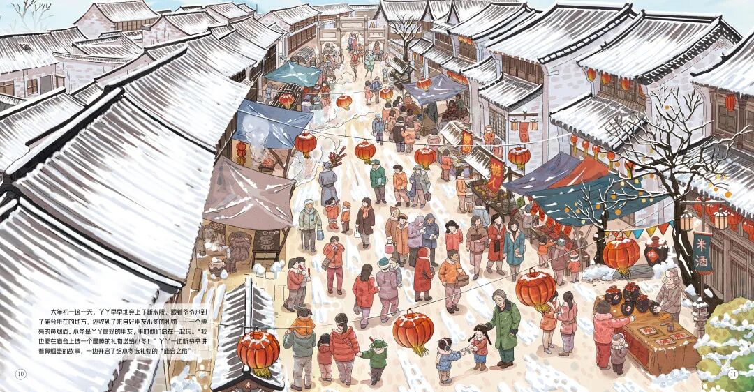 由一件新年礼物的寻找过程,串联起丫丫在庙会上的所见所闻,并选取了一些较具代表性的非遗项目,配合多幅手绘插图,对它们的历史、技艺等进行“揭秘”,让小读者们深入了解非遗文化,感受非遗文化的魅力。