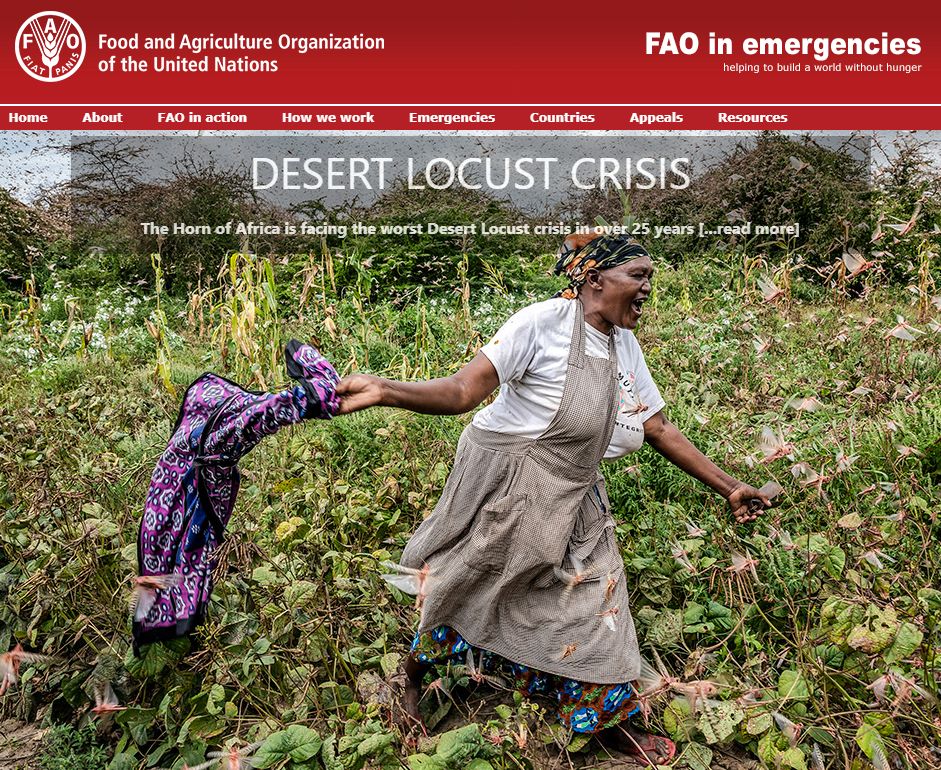 联合国粮农组织表示,一场大范围的蝗虫灾害席卷了从西非到东非、从西亚至南亚20多个国家,受灾面积总计1600多万平方公里。非洲之角是此次蝗灾的重灾区,其中埃塞俄比亚、吉布提、索马里遭遇25年来最严重蝗灾,而肯尼亚正经历70年来最严重蝗灾。
