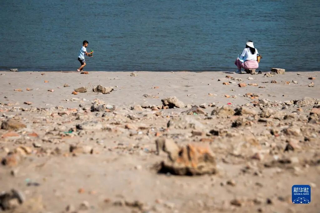 长江、汉江交汇处的南岸嘴,以往冬春时节才会出现的沙滩,现在已因水位下降早早面世。