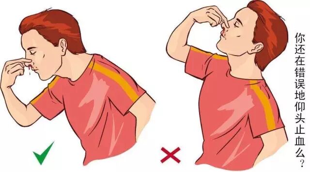 鼻出血时,自己按压鼻翼止血要采取低头位置,千万不要头后仰,以免血液倒流到咽喉,导致呛咳,影响呼吸,甚至可能引起窒息。