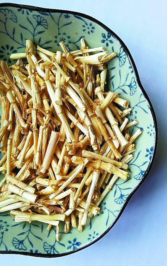 做法:茅根15克、竹蔗150克、马蹄(去皮)3个,一同置于砂锅内,加入适量清水,煎煮1小时,即可饮用。