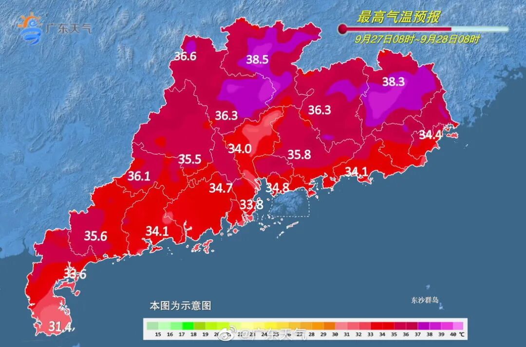 据@广东天气,未来三天,广东大部受副高脊控制,晴热天气为主,局地最高气温或超37℃。