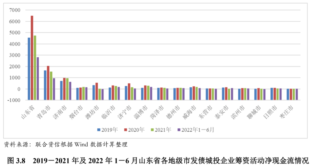 2021年以来,山东省大部分地级市发债城投企业债务负担加重,短期偿债指标弱化。各地级市发债城投企业债务偿还仍主要依赖于外部筹资,各地级市融资状况受融资环境及地方债务负担等影响表现不一,潍坊市、泰安市、聊城市和日照市净融资规模收缩较为明显。青岛市和济南市、潍坊市和济宁市的发债城投企业未来三年到期与回售债券规模大。