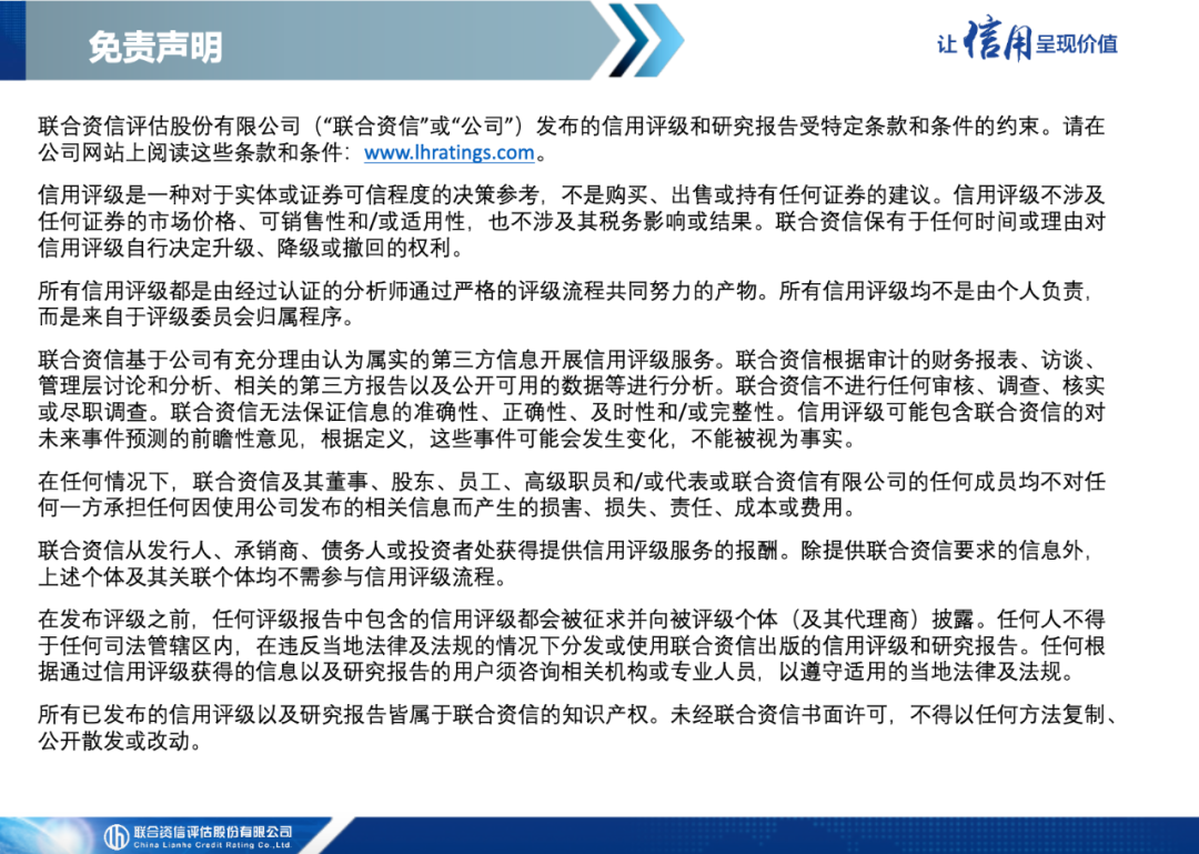 联合资信是目前中国最专业、最具规模的信用评级机构之一,总部设在北京,公司经营范围包括:信用评级和评估、信用数据征集、信用评估咨询、信息咨询;提供上述方面的人员培训。目前开展的主要业务包括对多边机构、国家主权、地方政府、金融企业、非金融企业等各类经济主体的评级,对上述各类经济主体发行的固定收益类证券以及资产支持证券等结构化融资工具的评级。