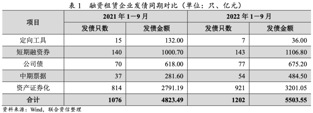 ●2022年前三季度,融资租赁公司发债规模同比小幅增长,资产证券化产品发行规模增幅高于普通债券发行量。无公开主体级别融资租赁公司主要发行资产证券化产品,企业个数增长快、发行主体更新迭代加快,公开市场融资渠道相对单一。